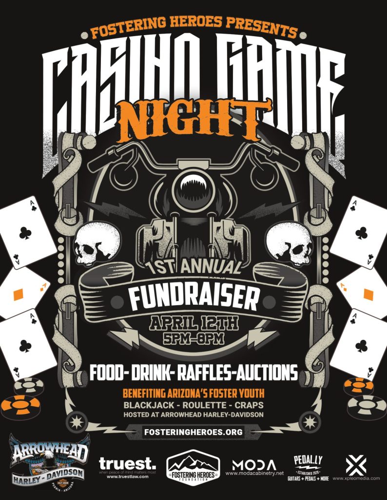 Join Fostering Heroes Foundation’s 1st Annual Casino Game Night! Enjoy a fun evening of blackjack, roulette, craps, food (included with your ticket purchase) and drinks (cash bar) while supporting an amazing cause. There will be raffles and auctions with some awesome prizes.